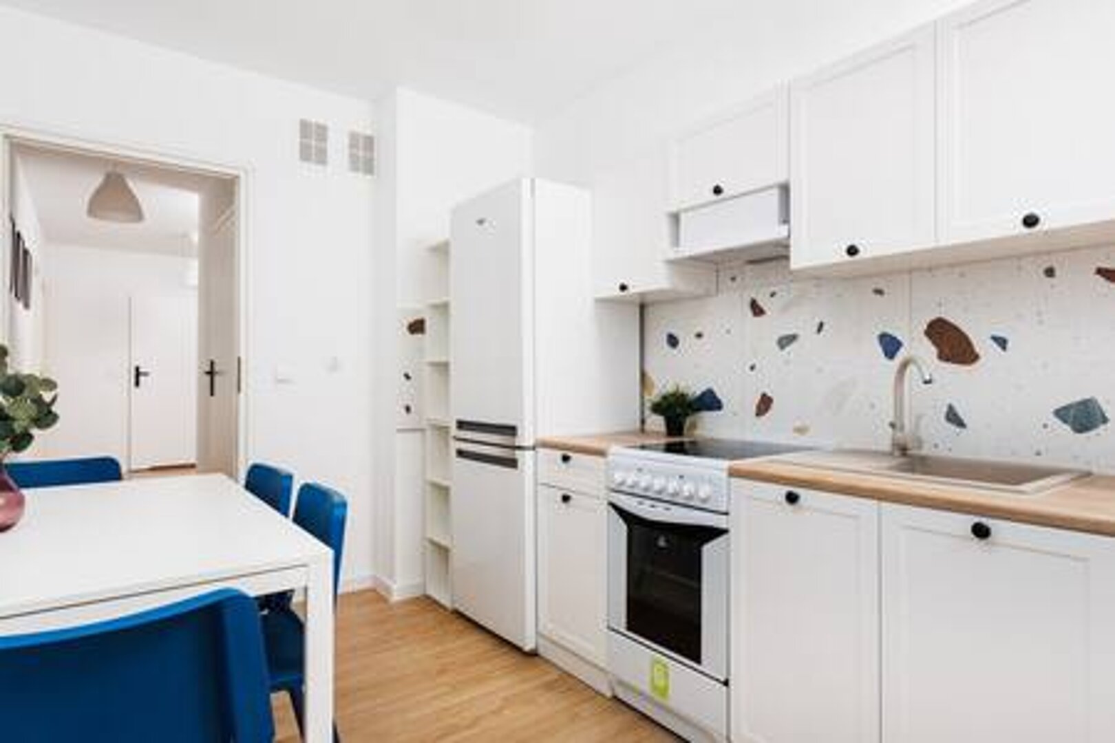 - pełnowymiarową lodówkę z zamrażarką,