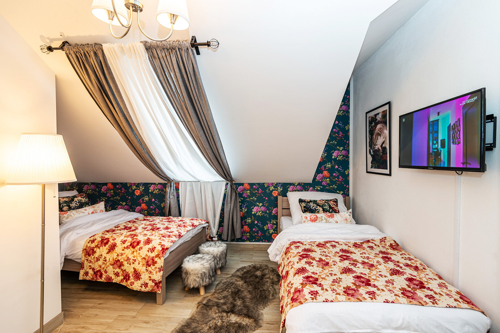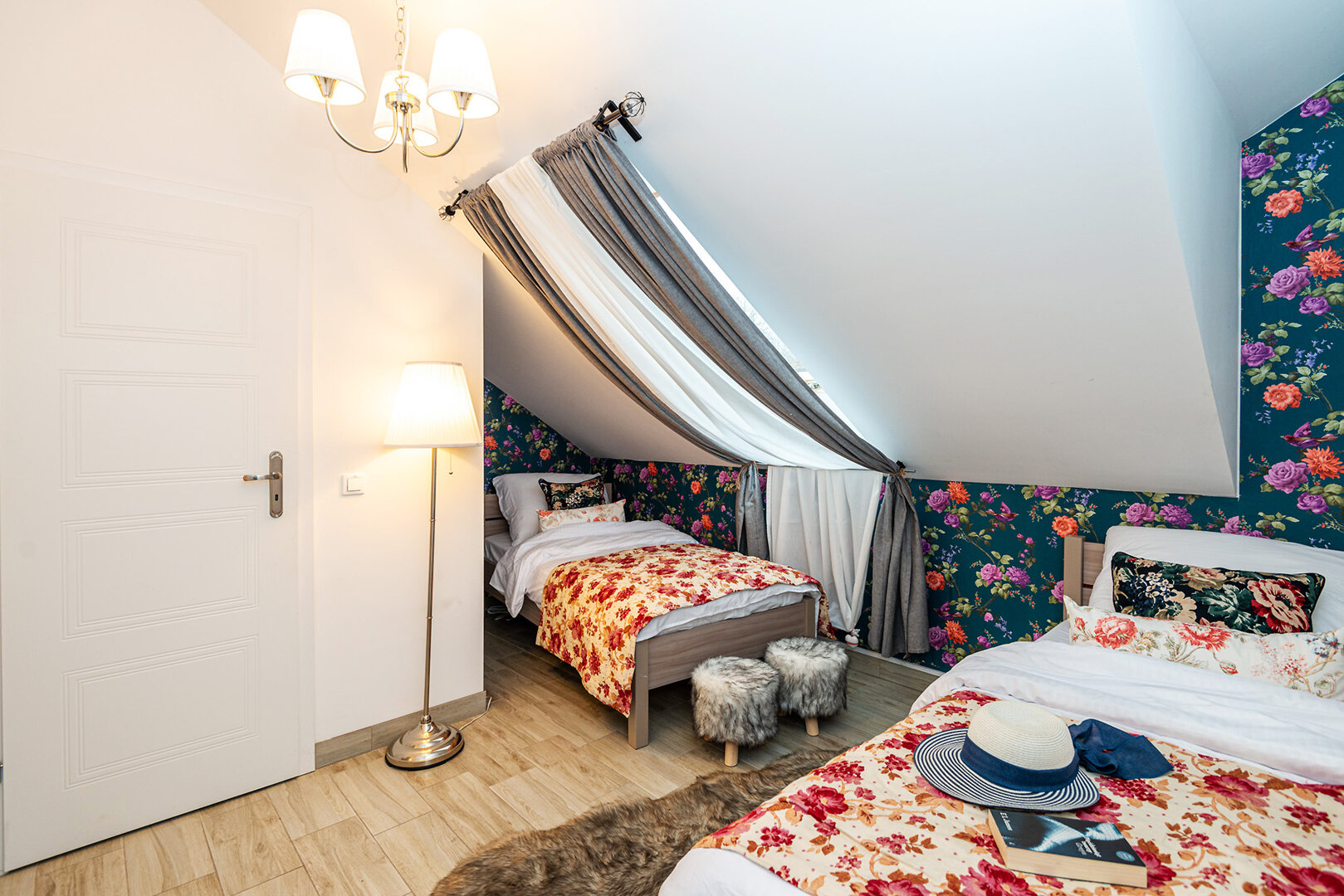 -2 pojedyncze łóżka (90x200cm), które z łatwością można połączyć,