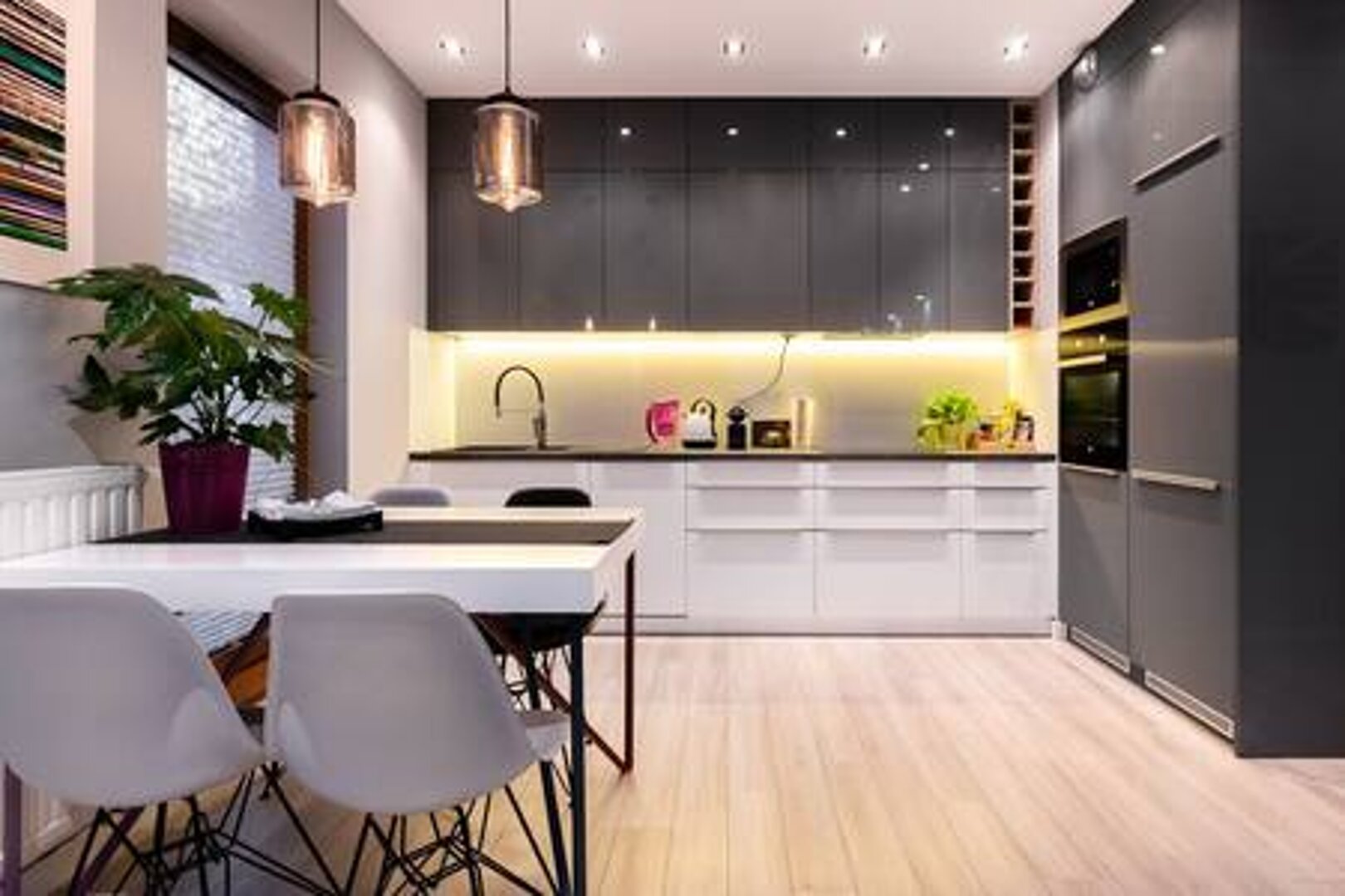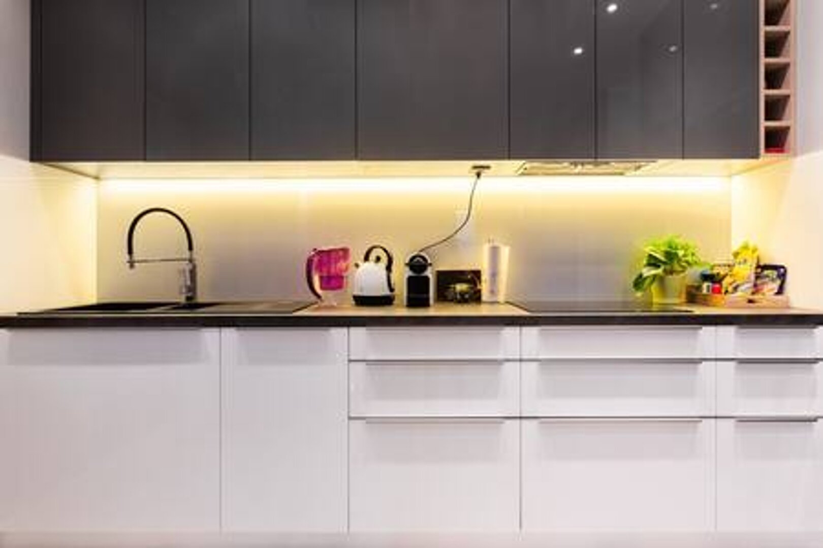 Mieszkanie jest wyposażone w nowoczesny, wysokiej klasy sprzęt, taki jak zmywarka do naczyń, piekarnik itp.